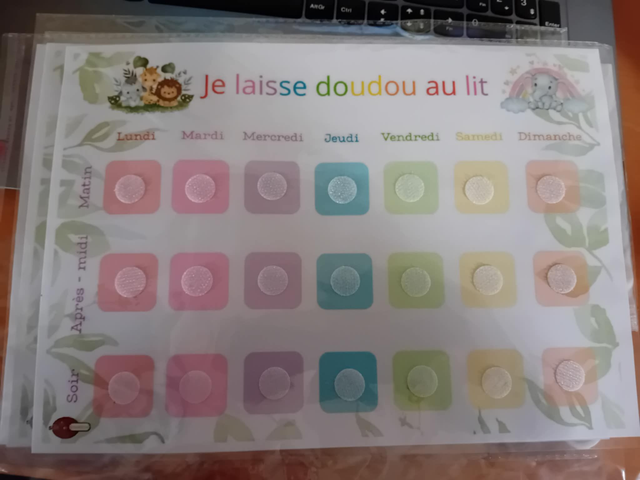Ce tableau est conçu pour aider les tout-petits à apprendre à se séparer de leur doudou. C’est un outil ludique, visuel et encourageant pour instaurer une transition positive vers plus d’autonomie affective.